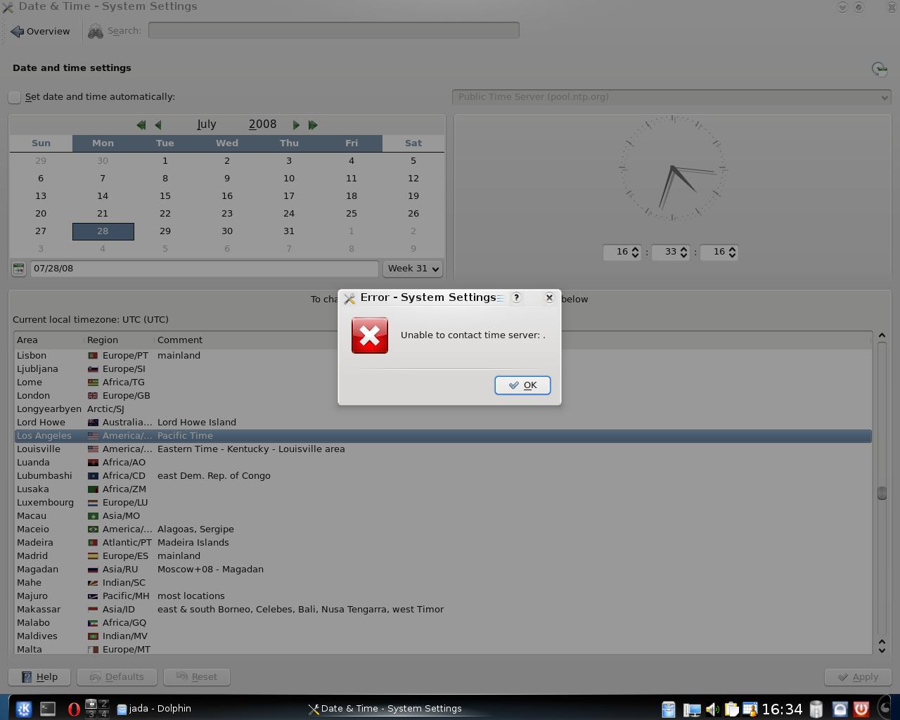 Additional info: After a clean Installation! (several Boxes with a differant hardware! Time Zone, don't accept local Los Angeles can't use NTP! screenshot 1 & 2 System settings No Artwork show up! screenshot 3 Screensaver GL EuphoriaGL my favorite looks funny 1/4 of Top left side the screensaver the last 3/4 of the screen is grey Parallel Install from Gnome & KDE on one Box. Manager GDM didn't see KDE4.1 |