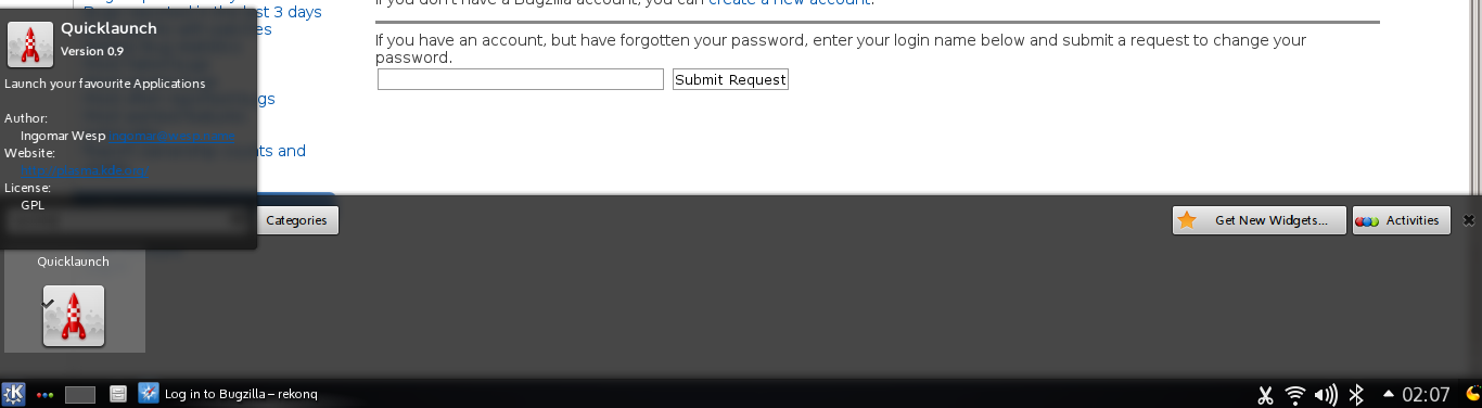 The mouse cursor is directly over the quicklaunch applet but the popup is still for the taskmanager. I cannot right-click the quicklaunch applet neither.