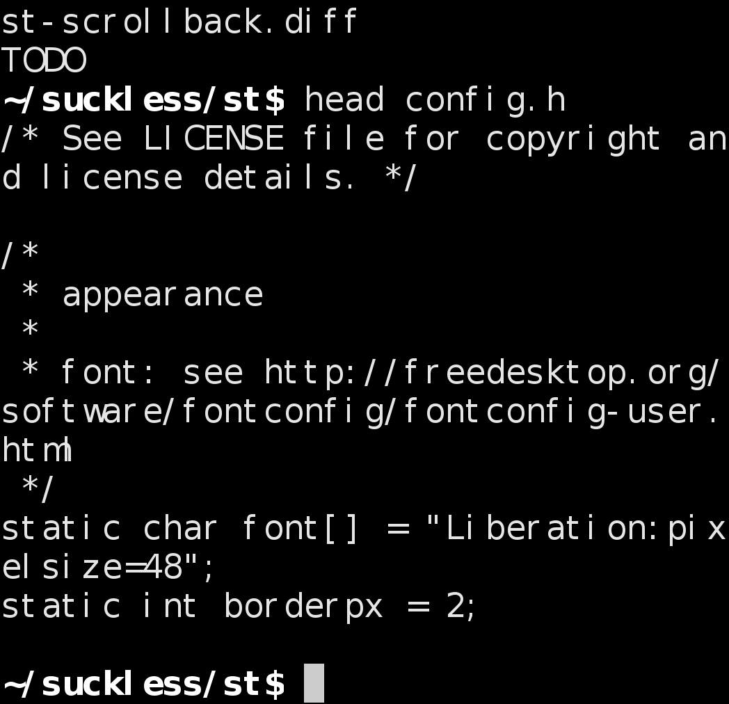DetailsDescription: Large sizes (required for HiDPI displays) defined in http://st.suckless.org/ which using fontconfig IIUC look fugly.