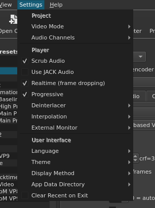The release notes for version 20.02.17 refer to a menu option (Settings -> Preview Scaling) that doesn't seem to be available on this build ? see https://forum.shotcut.org/t/preview-scaling/15650 Additional info: shotcut 20.02.17-1 Steps to reproduce: Load any project, click on Settings menu. |