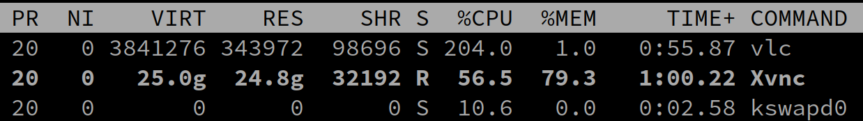 This bug is applicable to XVNC as behavior is present with any vnc application which utilities XVNC backend install tigervnc-1.12.0-3 and start vncserver session execute "top" command to observe XVNC memory leak Expected behavior Previously memory would rarely exceed 0.5% Client OS: Arch Linux (vanilla) VNC client: [e.g. Remmina & Apache Guacamole] VNC client version: latest Client downloaded from: Aur repo and docker Server OS: Arch Linux (vanilla) VNC server: [have tried TigerVNC, TurboVNC & XRDP] VNC server version: [latest] Server downloaded from: [AUR/GIT] Server was started using: [vncserver, etc] If i restore my system to a backup taken 30 days prior issue is not present. Issue must therefore must be an package update. Does not appear to be related to packages; Xorg, Mesa, Vulkan, Python, QT5, Intel, Nvidia In an effort to troubleshoot, I upgraded these package independently and held back other updates and the issue was not present. Reported here as well; https://www.reddit.com/r/archlinux/comments/z0faik/xvnc_memory_leak/ https://github.com/TigerVNC/tigervnc/issues/1553 |