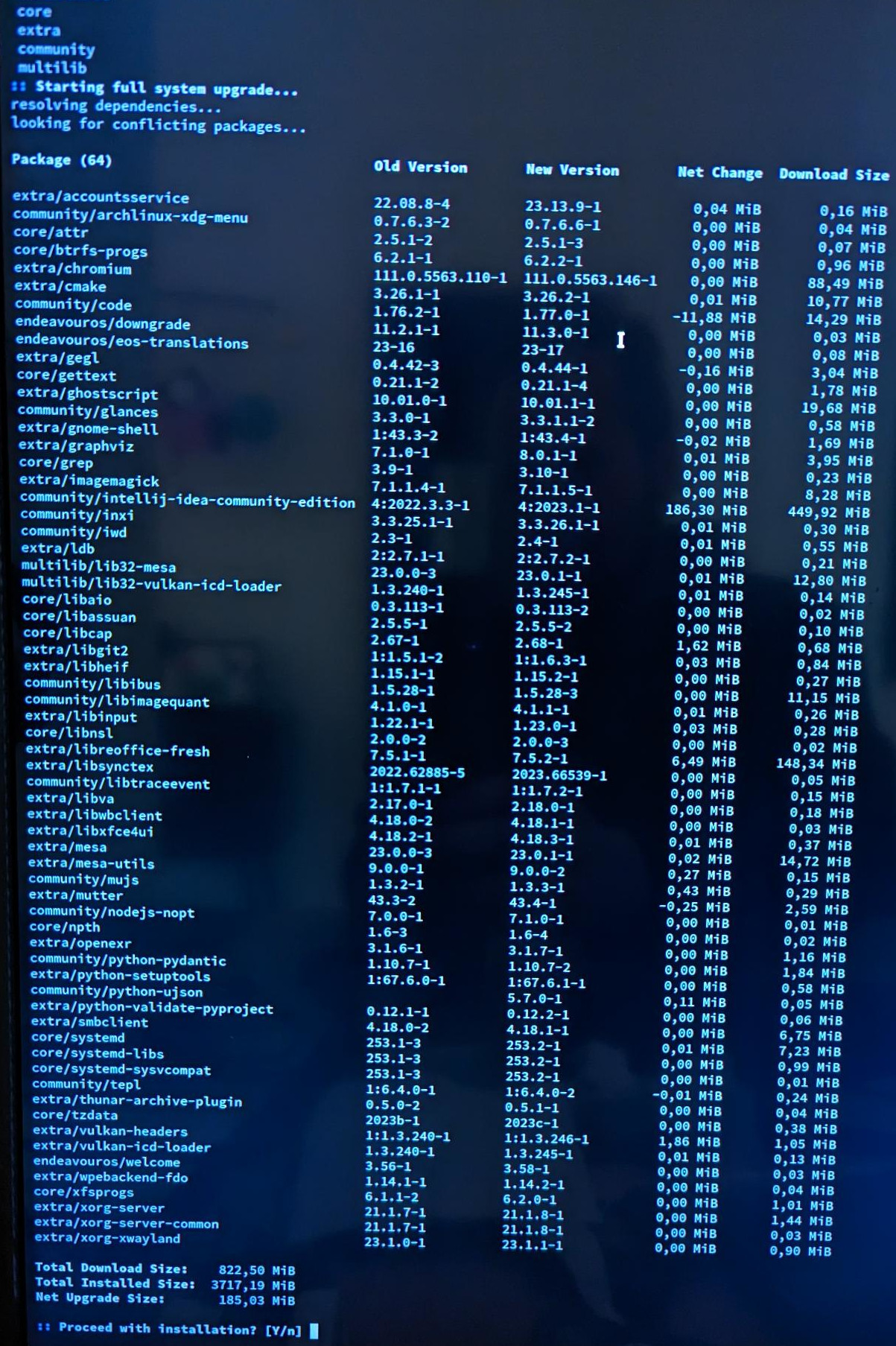 1) Upgrade via pacman -Syu (see upgrade.jpeg)